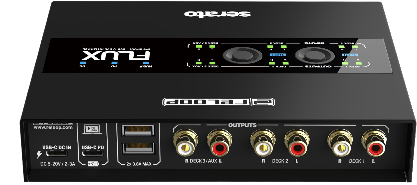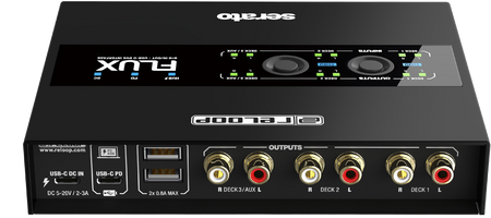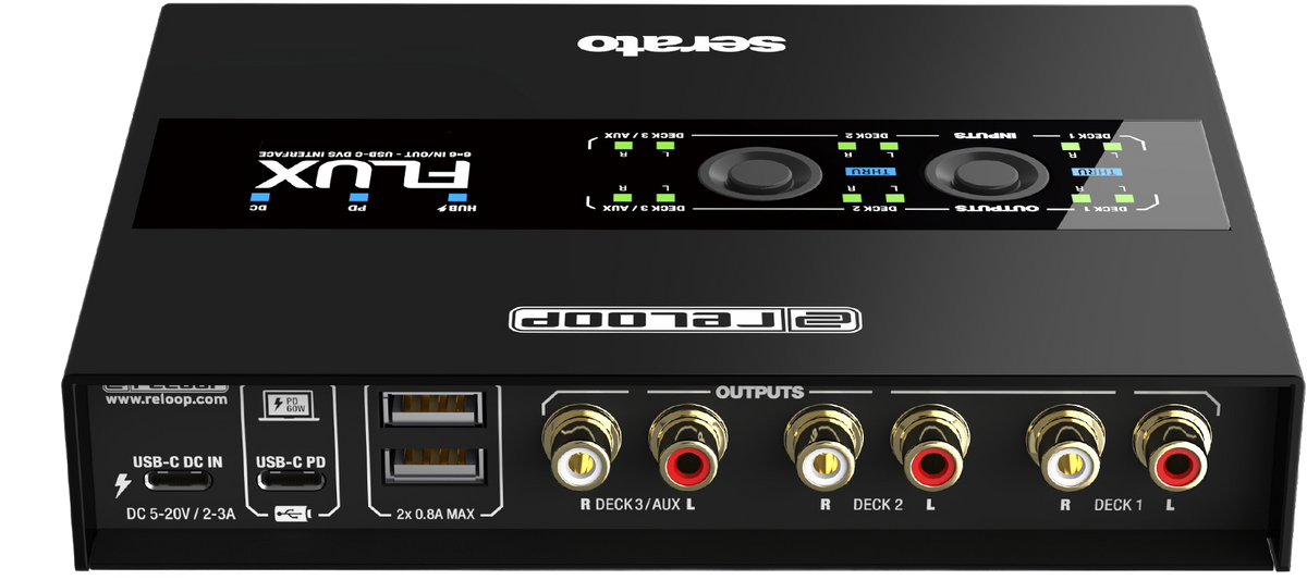 The Reloop Flux is a next-generation USB-C interface for using Serato DJ Pro with turntables, CDJs or other media players. The interface boasts superior audio qualities, a well-designed operating concept and a club-ready design. It can transform any conventional mixer into a professional digital vinyl system.